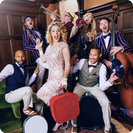 By far the most popular time to book live music at a wedding is in the evening when you want your guests up and dancing. Our wedding bands are experts at filling your dance floor, whether you’re looking for cheesy covers, Motown classics or barnstorming folk bangers. Smaller band sizes and DJs are also great options if you’re on a tighter budget.